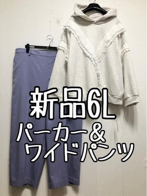 新品☆6L♪フリル可愛いフェミニンパーカー&ワイドパンツ♪☆u715