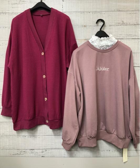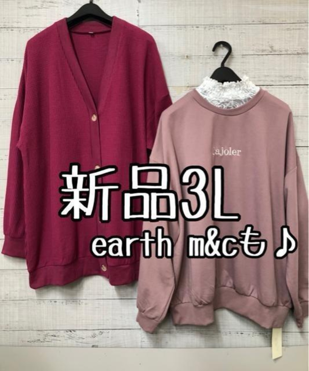 新品☆3Lピンク系♪earthレース衿プルオーバー&長めカーディガン♪☆s256