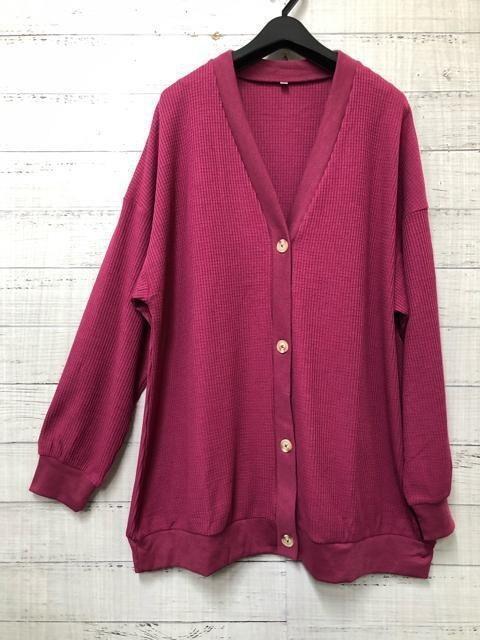 ・ワッフル素材の長め丈カーディガン