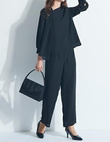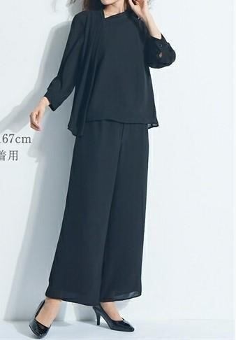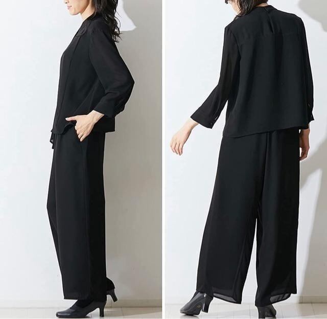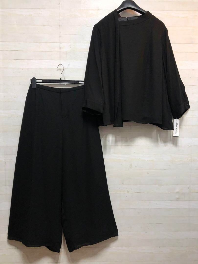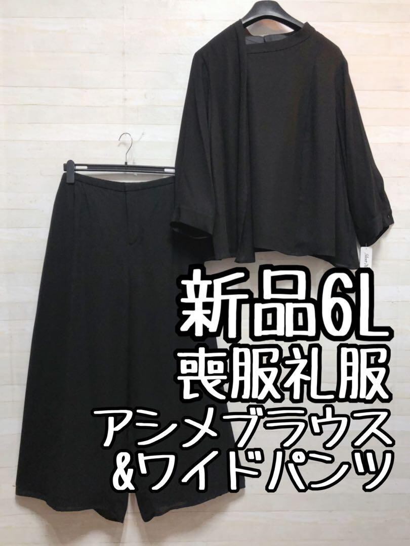 新品☆6L喪服礼服ブラックフォーマル黒ワイドパンツのセットアップ〇G104