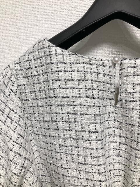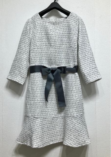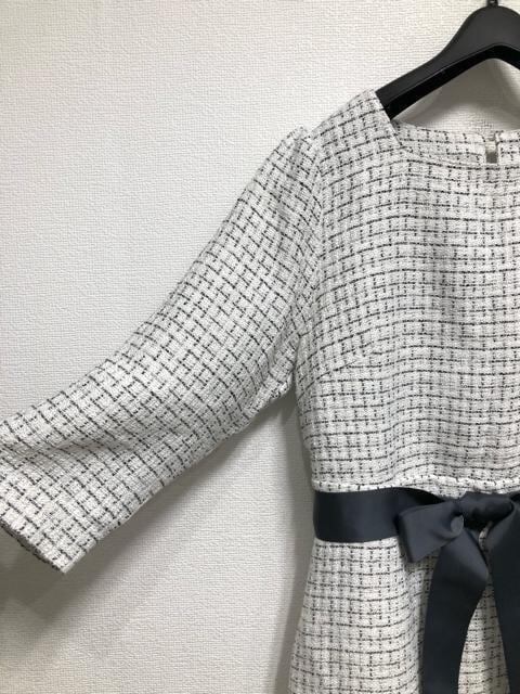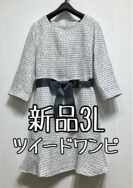 新品☆3L♪白系♪フェミニンきれいめツイードワンピース☆w990