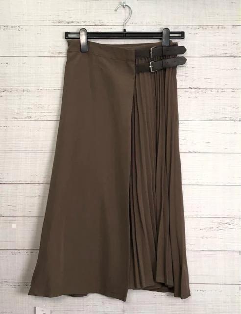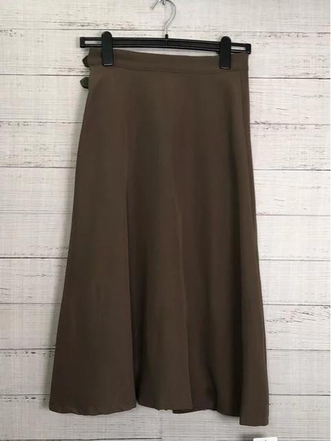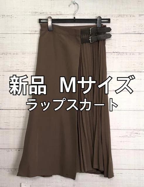 新品☆M♪ブラウン系♪プリーツ巻きスカート♪ラップスカート☆p120