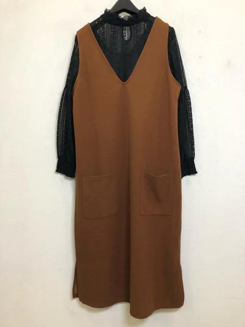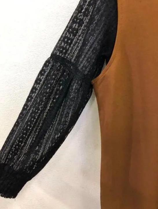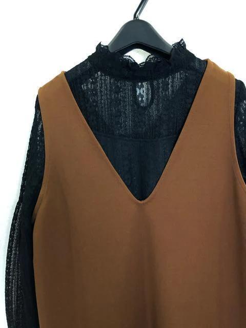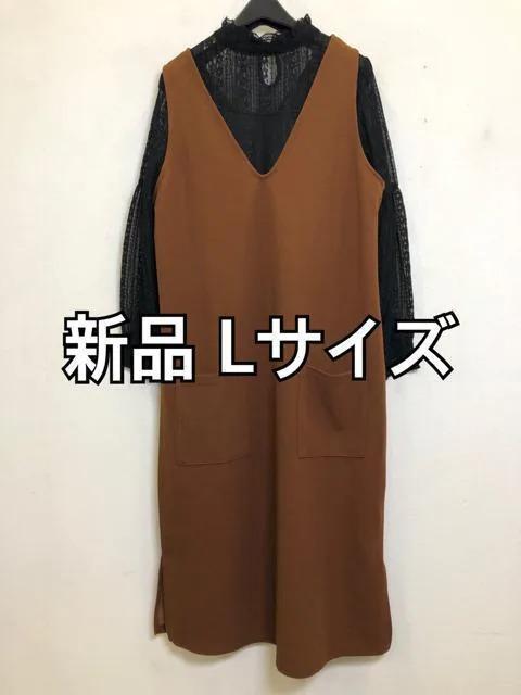 新品☆L♪黒×茶系♪オシャレなレースブラウス&ジャンパースカート☆f419