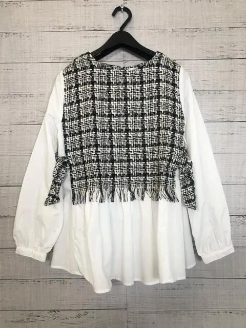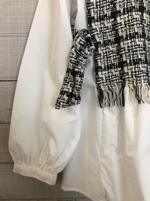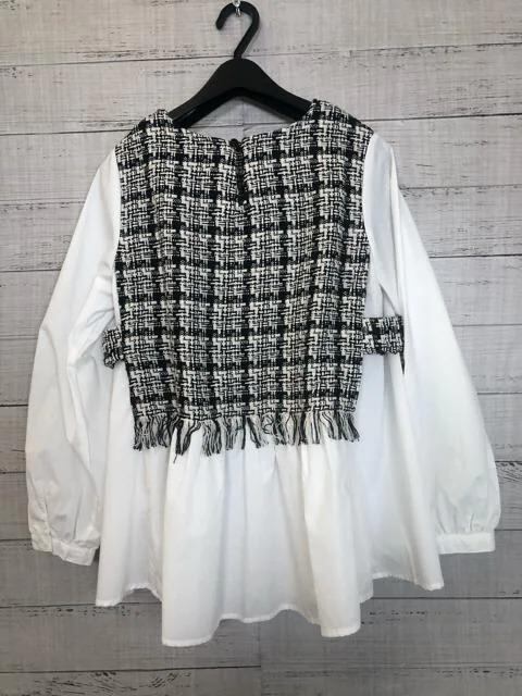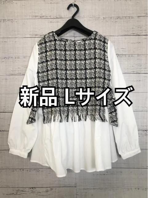 新品☆L♪ツイードベスト×ブラウスの可愛いドッキングブラウス♪☆y420