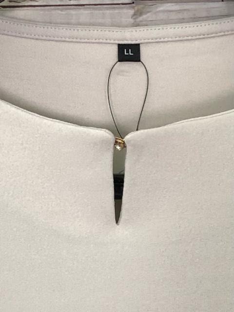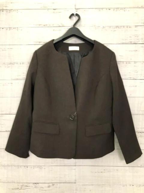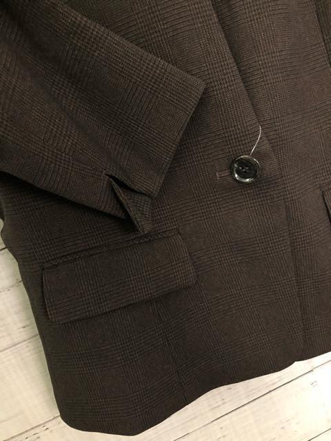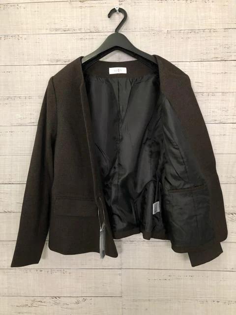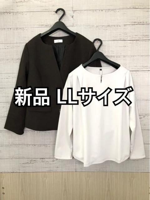 新品☆LL♪茶系ノーカラージャケット♪ストレッチブラウス付き☆f821