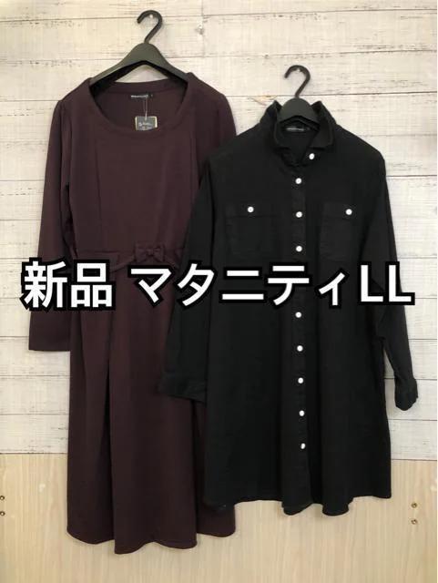 新品☆マタニティLL♪茶×黒系♪お出掛けワンピ&シャツチュニック☆y764