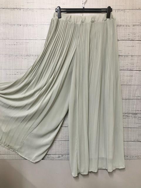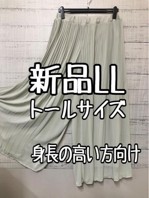 新品☆LLトールサイズ♪グリーン系シフォンプリーツきれいめワイドパンツ☆k554