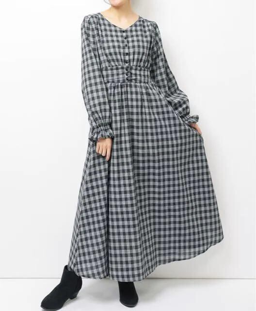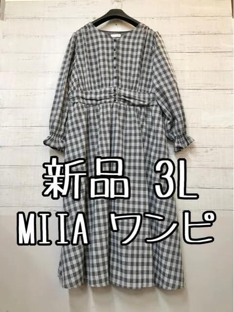 新品☆3L♪グレー系チェック♪ミーアMIIAマキシ丈おでかけワンピース☆e848