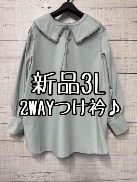 新品☆3L♪グリーン系♪2WAYつけ衿付きフェミニンブラウス♪☆t960