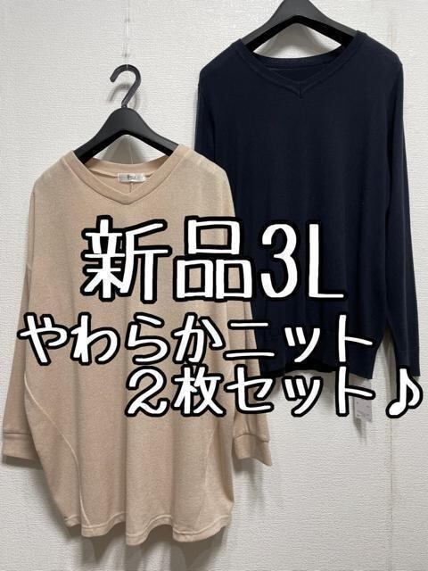 新品☆3L♪柔らか薄手のVネックニット2枚セット♪綿ニットも☆u573
