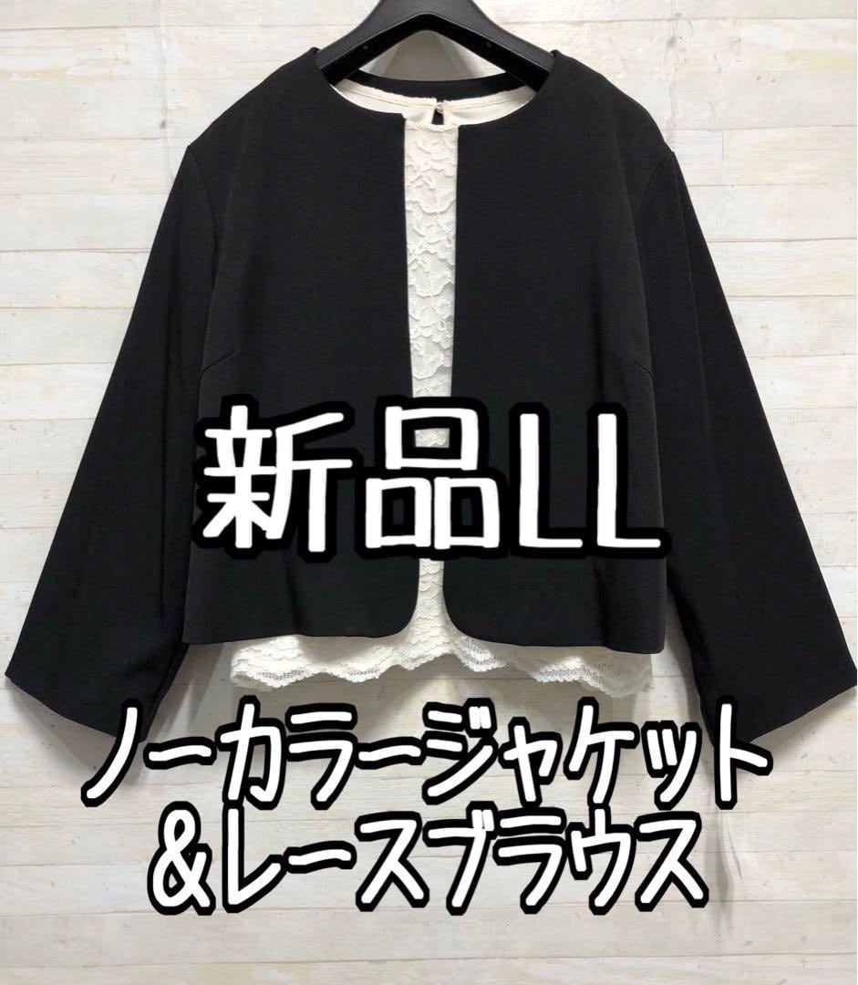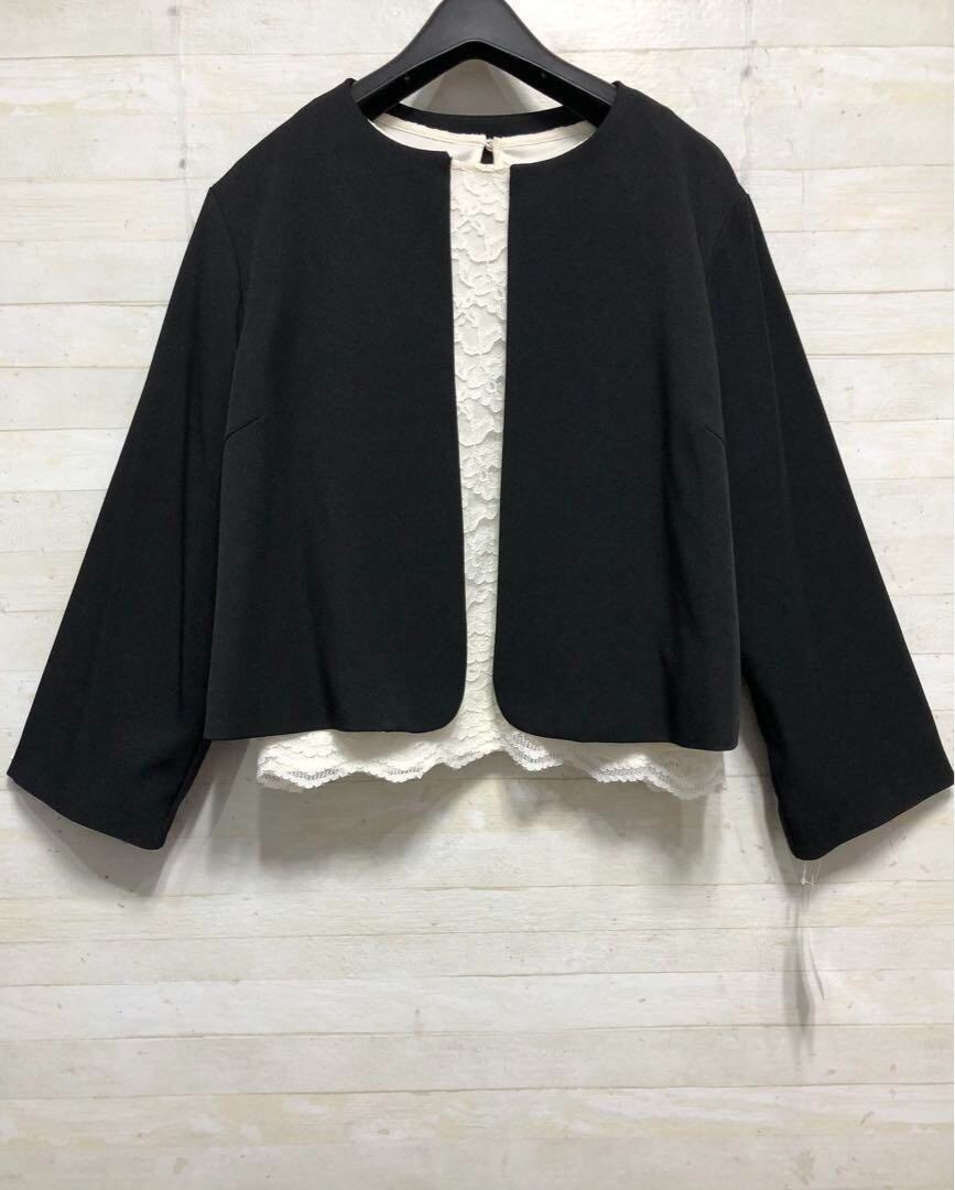 新品☆LL♪黒系ノーカラージャケット&白系総レースブラウス◯D262