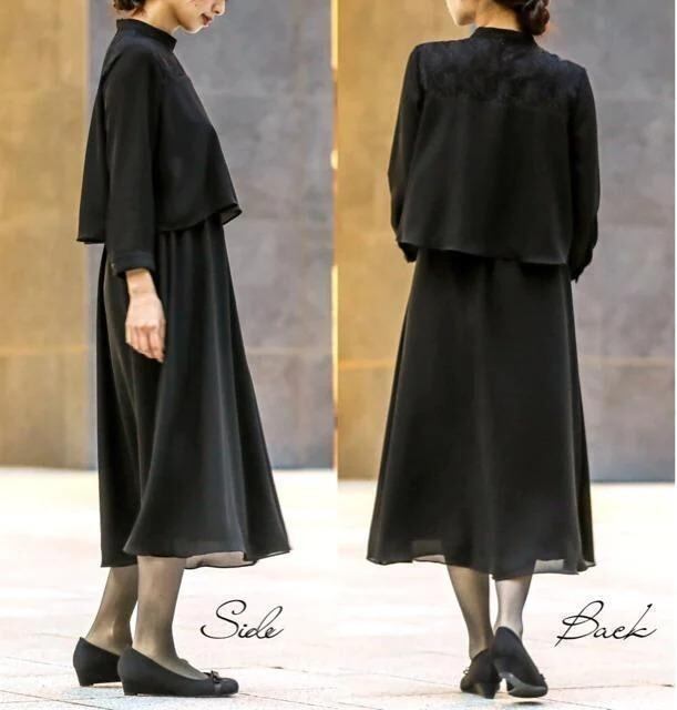 新品☆Sサイズ喪服礼服ブラックフォーマル黒系セパレート風ワンピース◯G146