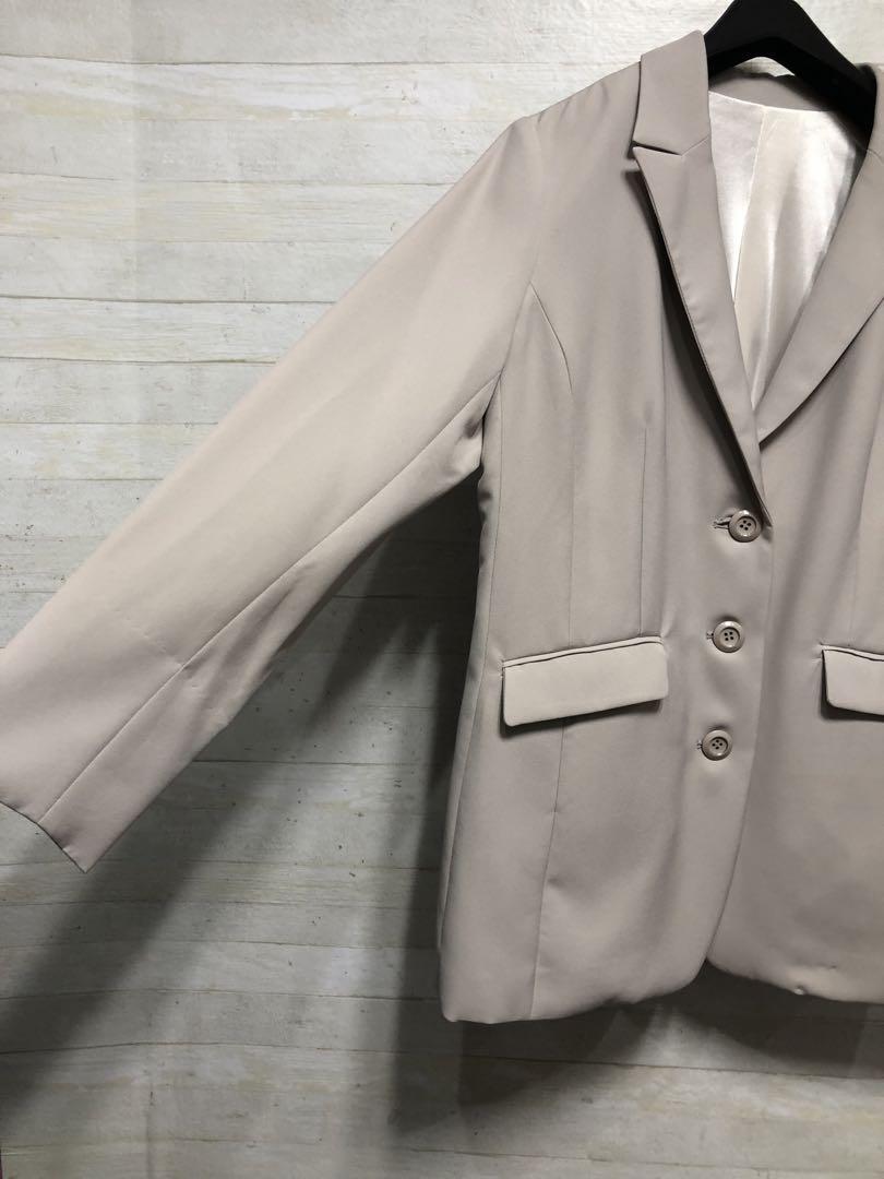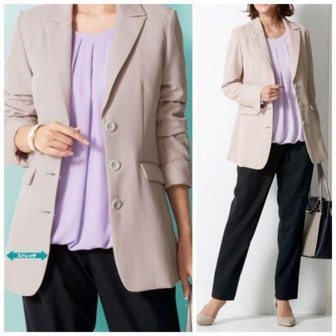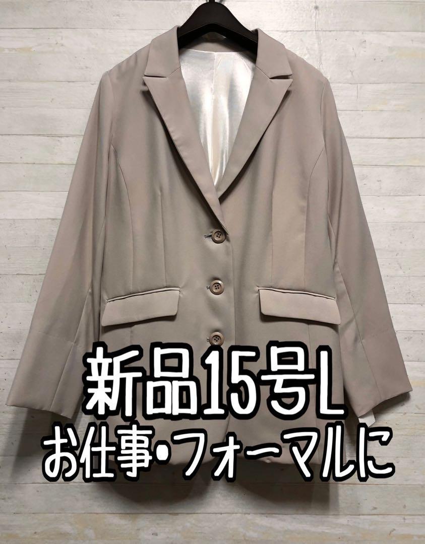 新品☆15号♪グレージュ系のテーラードジャケット♪ストレッチ素材〇D334
