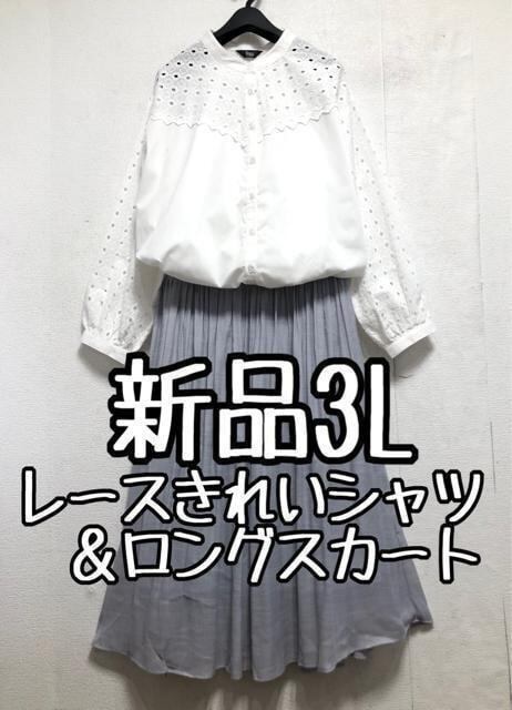 新品☆3L♪レース使いきれいシャツ&ふんわりロングスカート☆x135