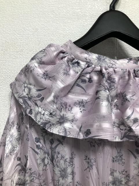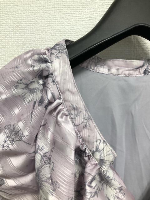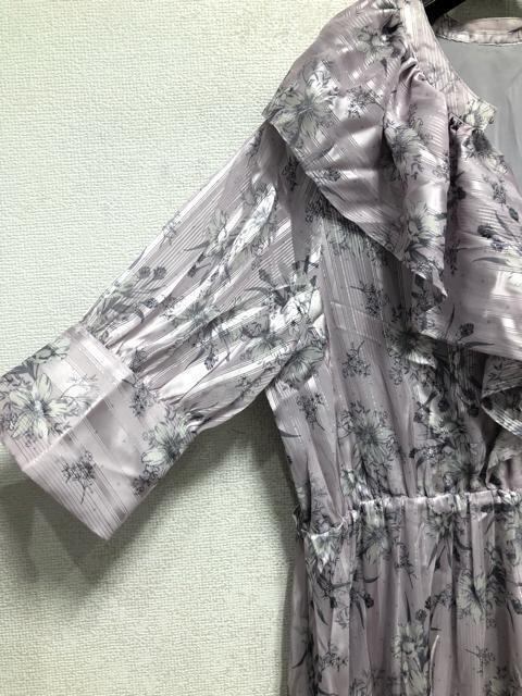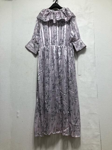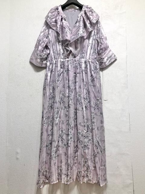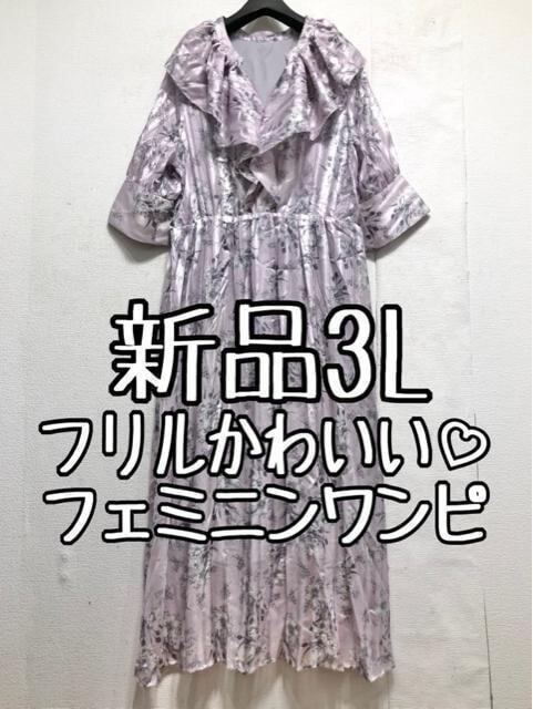 新品☆3Lラベンダー系♪衿フリルかわいい花柄プリント♪マキシ丈ワンピ☆x108