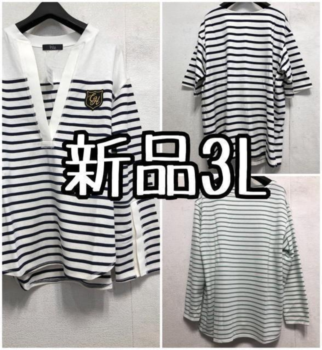 新品☆3L♪ボーダー柄おしゃれカットソー3枚セット♪コットン素材も☆x297