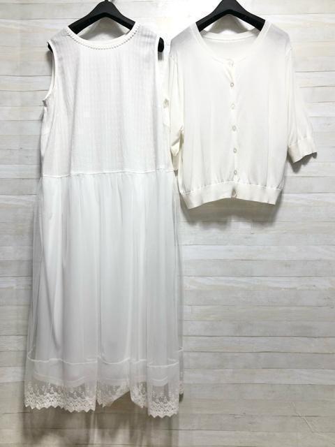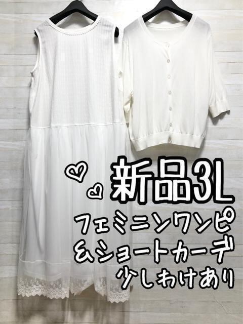新品☆3L♪白系♪チュールきれいワンピース&うす手カーディガン☆f104
