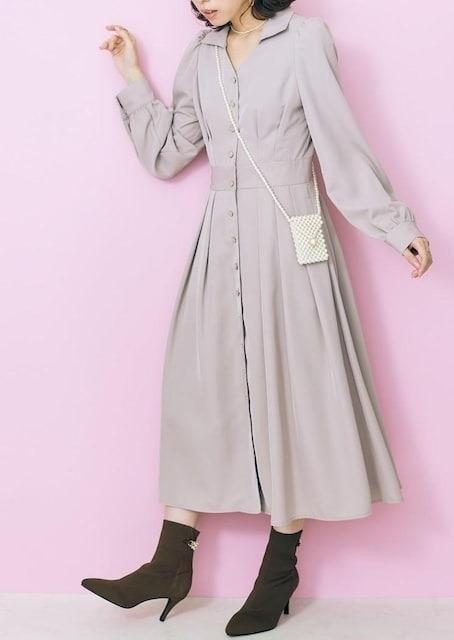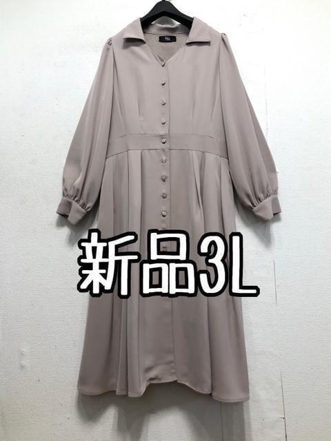新品☆3Lグレージュ系♪フロントボタンおしゃれロングワンピ♪1万円相当☆x311