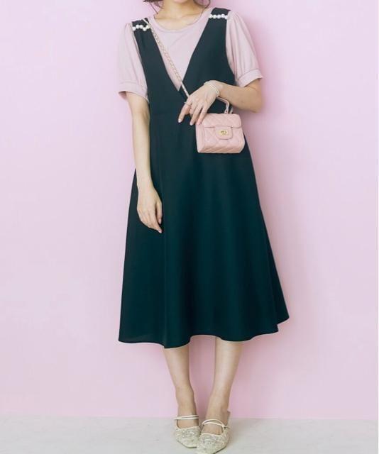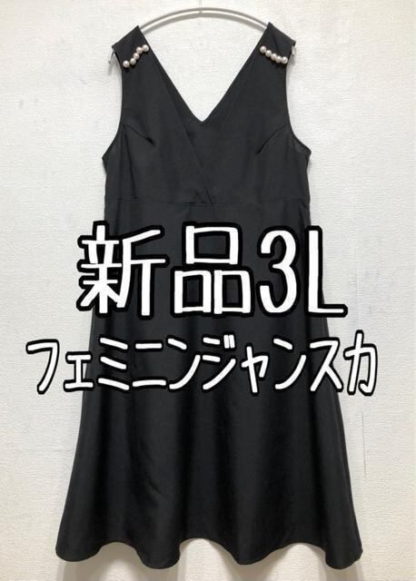 新品☆3L黒系♪パール調おしゃれジャンスカ♪重ね着に☆z444