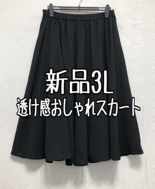 新品☆3L♪黒系♪透け感フェミニン♪マキシ丈ギャザーフレアスカート☆b200