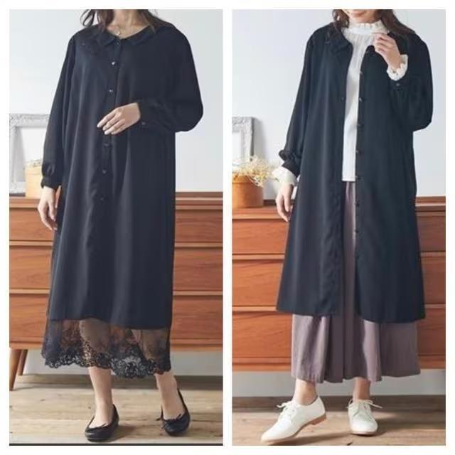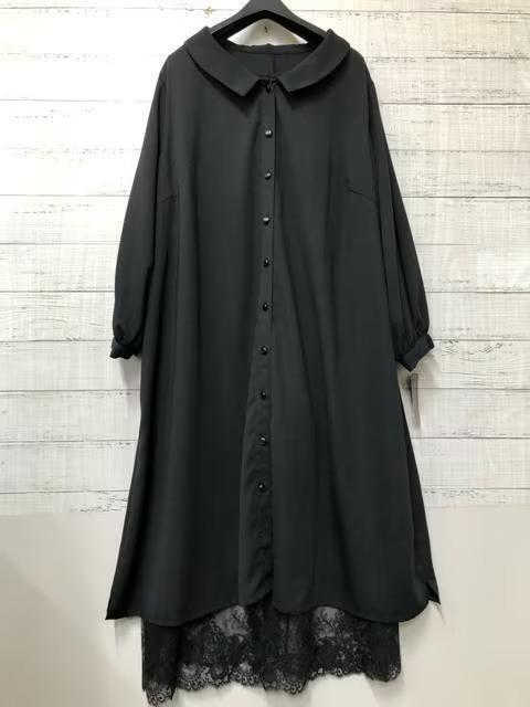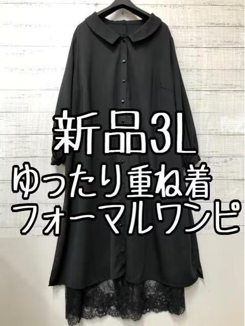 新品☆3L♪黒インナーワンピでレース見せ♪ゆったりフォーマルワンピース☆s582