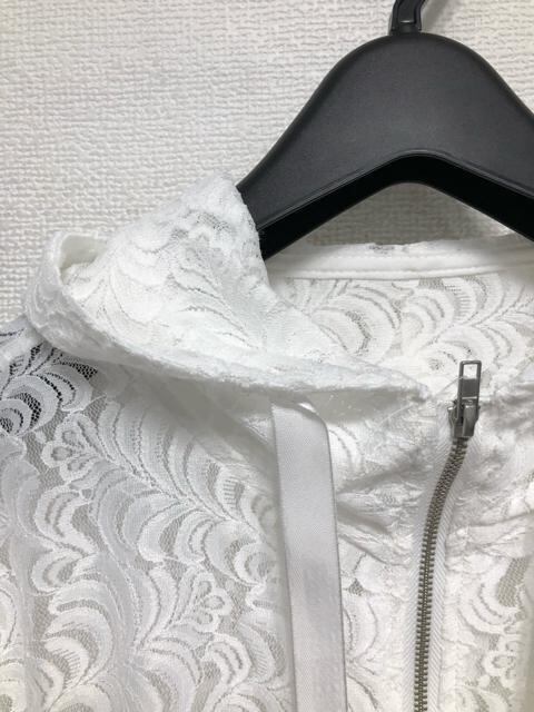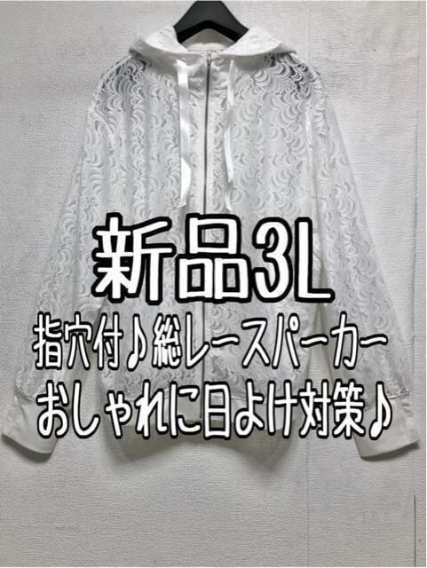 新品☆3L白系♪フェミニン総レースパーカー♪指穴付☆b797