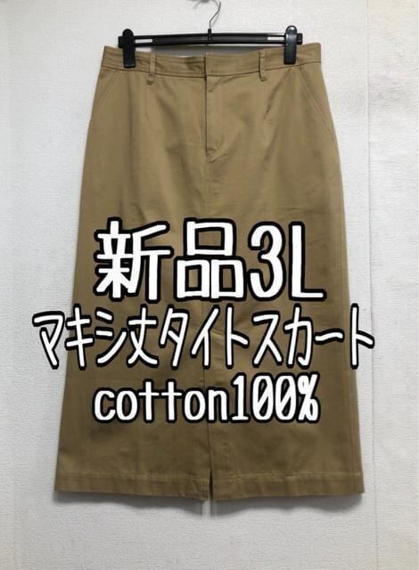 新品☆3Lベージュ系♪マキシ丈タイトスカート♪コットン100%☆b817