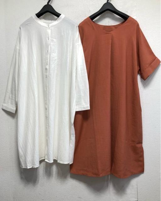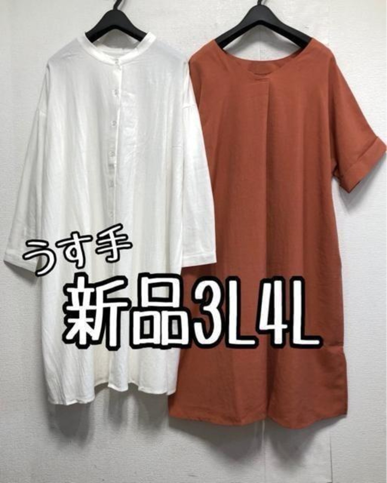 新品☆3L4L白系ロングシャツ&オレンジ系さらっとシャツワンピ♪うす手☆x286