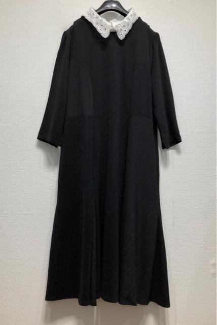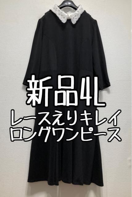 新品☆4L♪黒系♪マキシ丈レース衿きれいなワンピース♪フォーマルにも☆z370