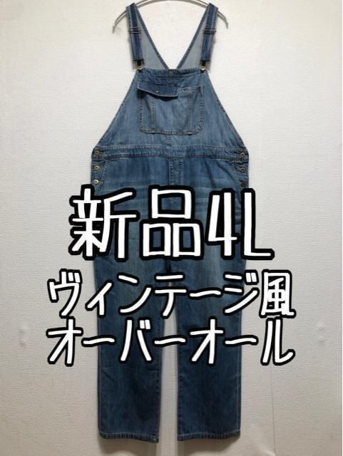 新品☆4L♪ブルー系デニム♪おしゃれオーバーオール☆w958