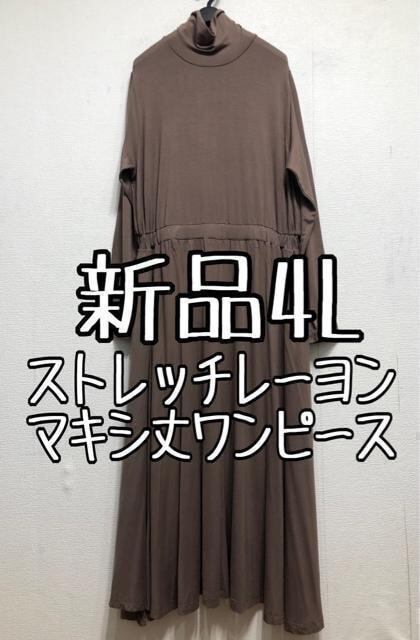 新品☆4L♪モカ系♪ストレッチ素材マキシ丈ワンピース☆z398