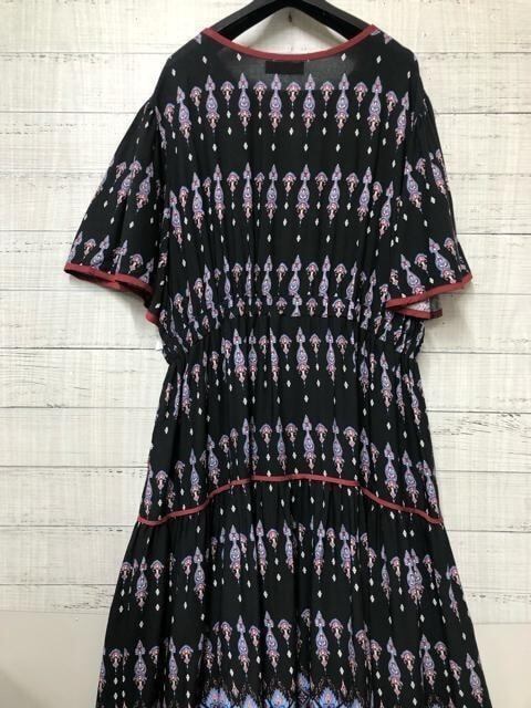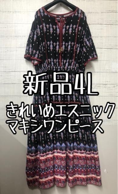 新品☆4L♪黒系エスニックきれいめ半袖マキシワンピース♪おしゃれ☆k542