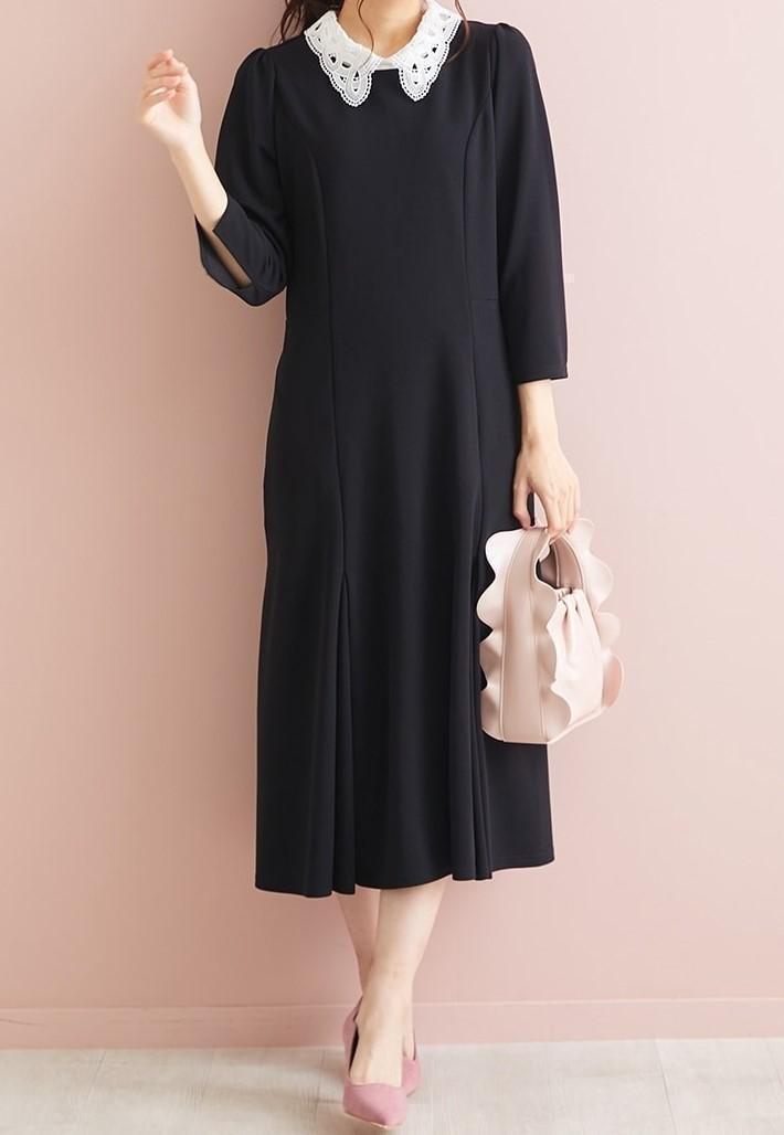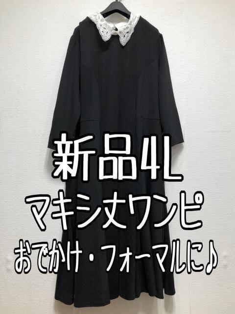 新品☆4L♪黒系♪つけ衿付マキシ丈ワンピース♪お出かけフォーマル☆u672