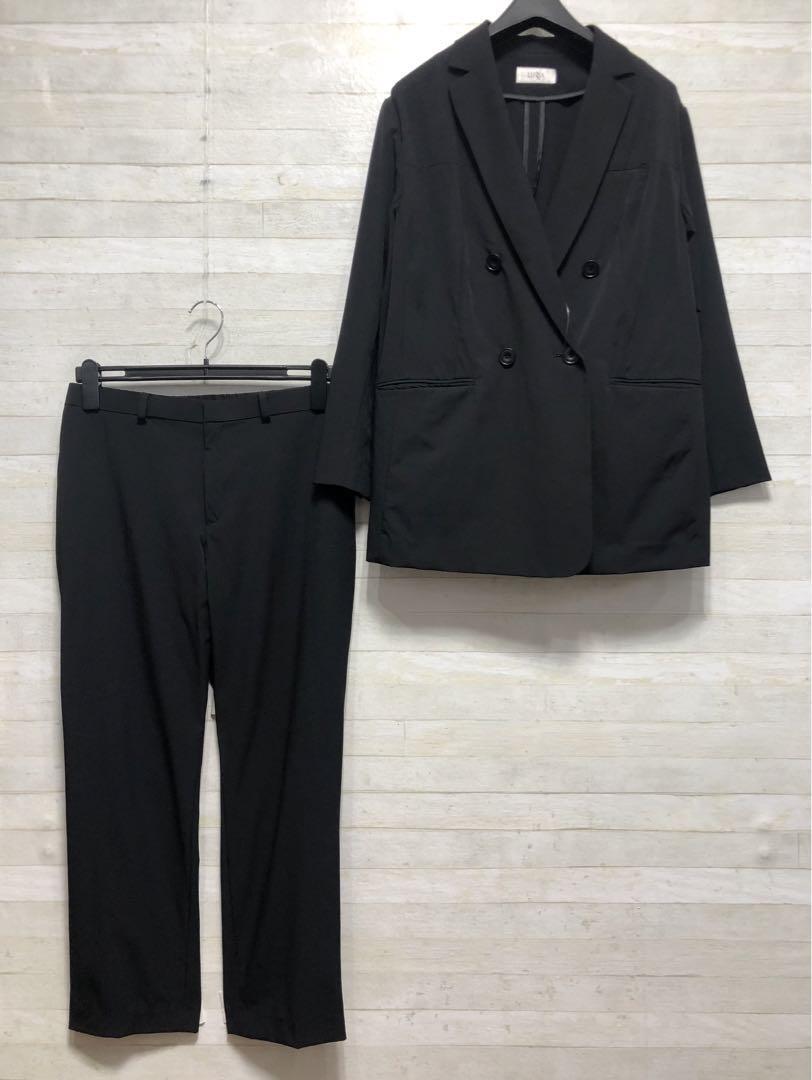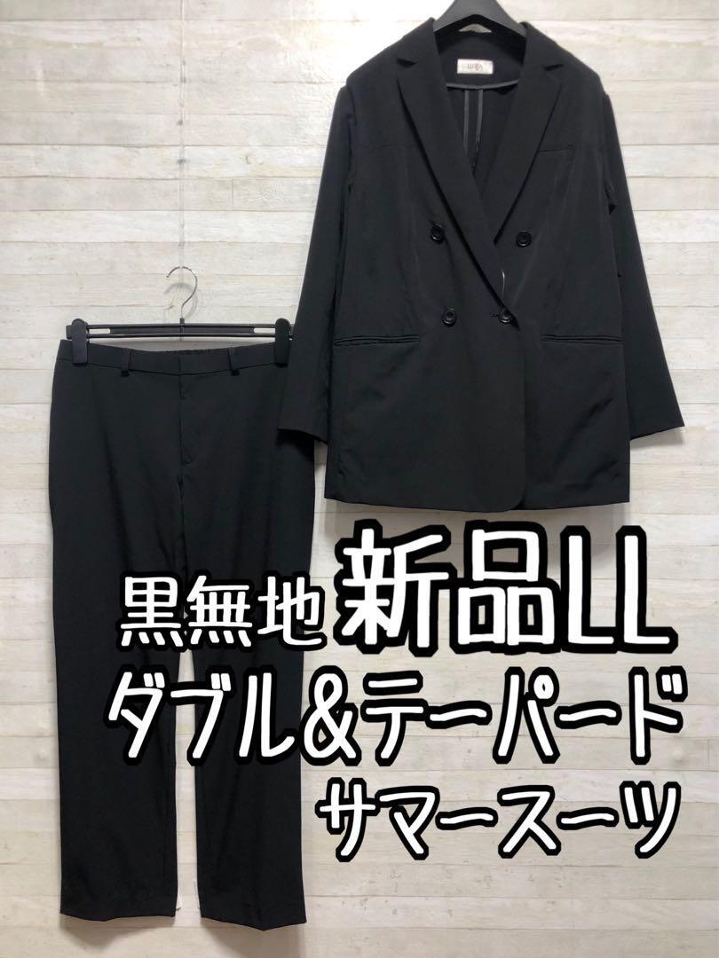 新品☆LL黒系無地♪ダブルジャケットパンツスーツ♪2.1万円相当〇D377