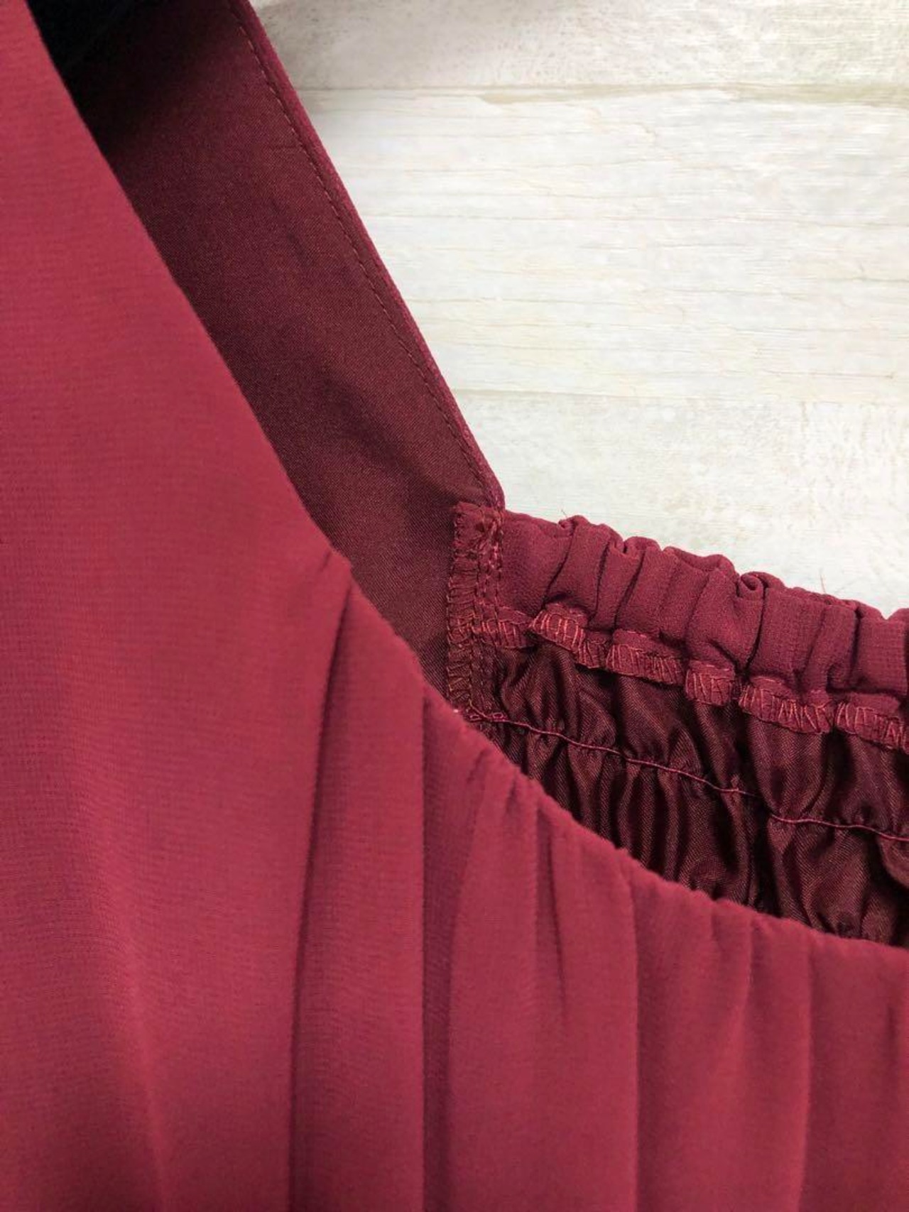胸元のギャザーが縦ラインを強調