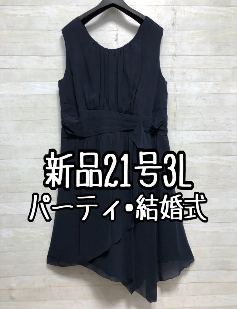 新品☆21号3L♪紺系のパーティワンピース♪謝恩会や二次会などに最適〇G224