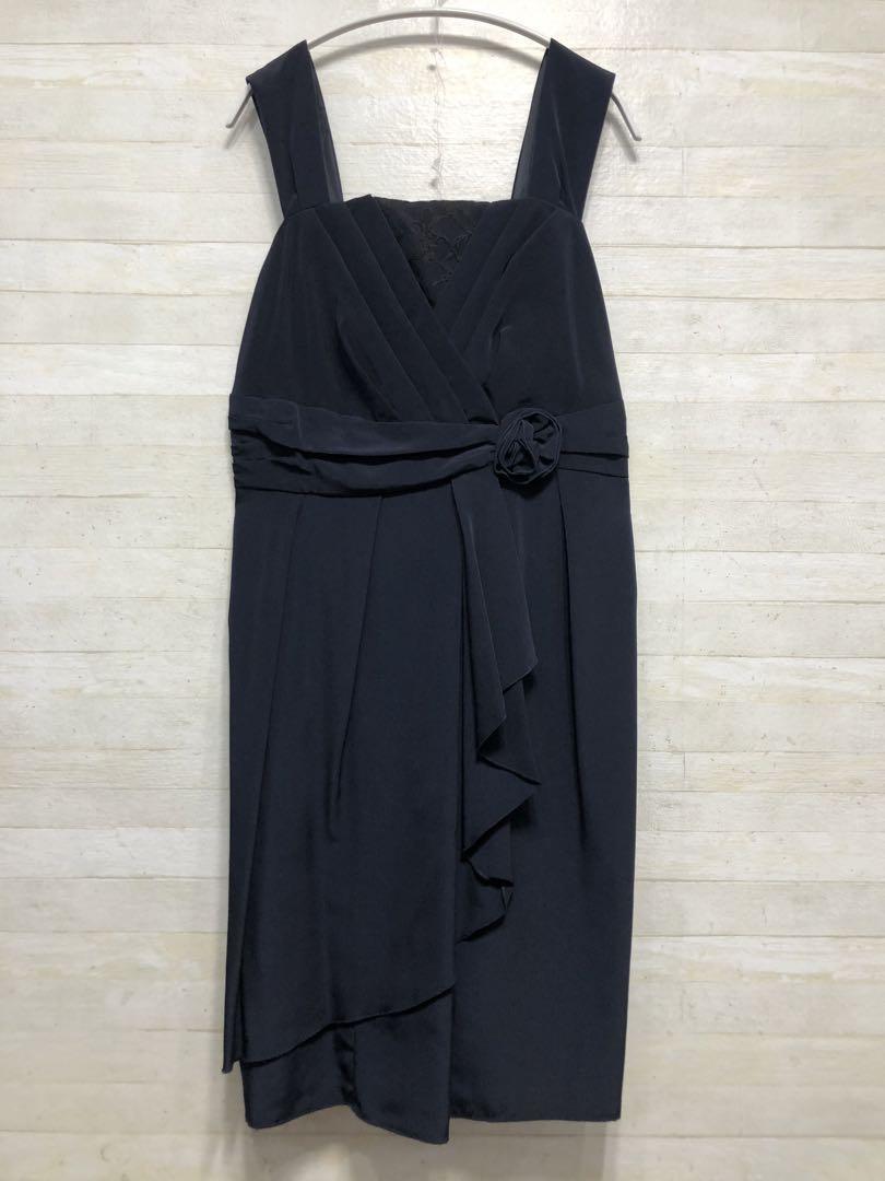 新品☆21号3L濃紺系パーティワンピース♪前開き♪謝恩会や二次会に最適〇G225
