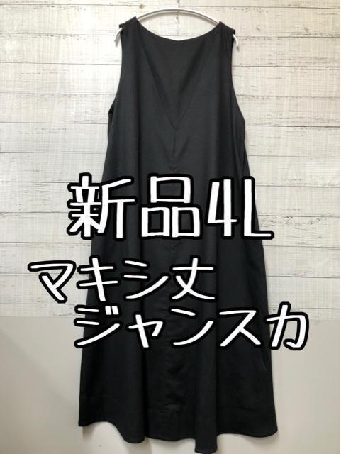 新品☆4L黒系きれいな深Vネックのマキシ丈ワンピース・ジャンスカにも☆☆s309