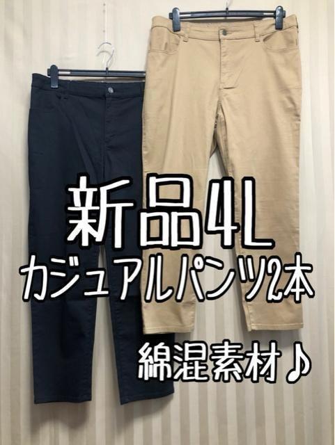 新品☆4L♪黒×ベージュ系♪カジュアルパンツ2本セット♪スキニー☆x491