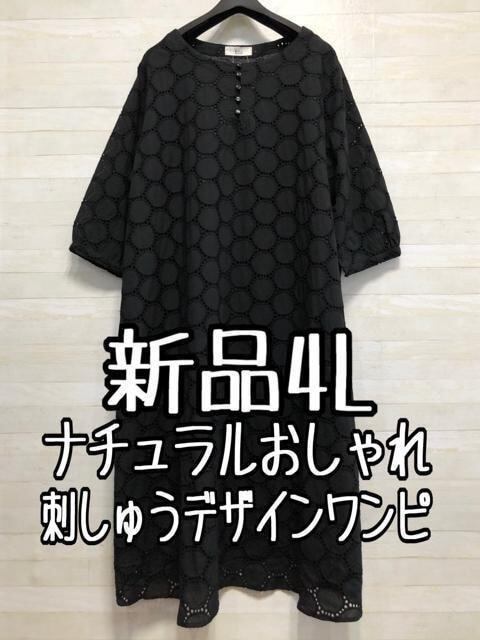 新品☆4L黒系♪刺しゅうデザインおしゃれワンピース♪フォーマルにも☆f459