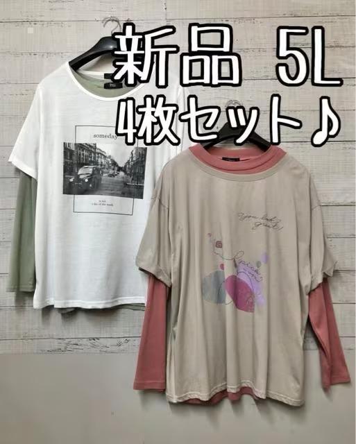 新品☆5L♪デザインTシャツやロンTを4枚セット♪重ね着にも♪☆s783