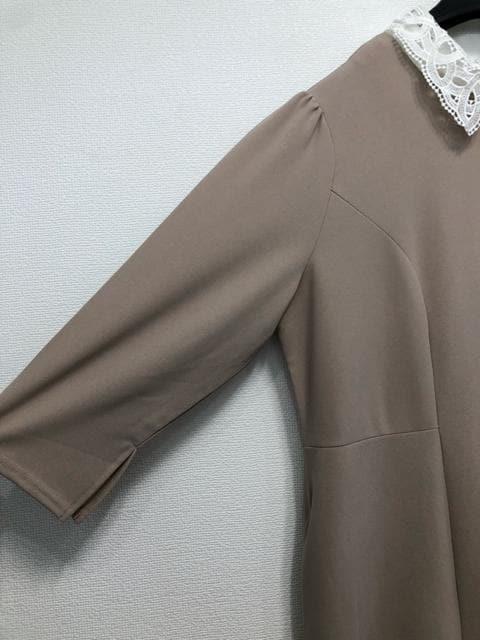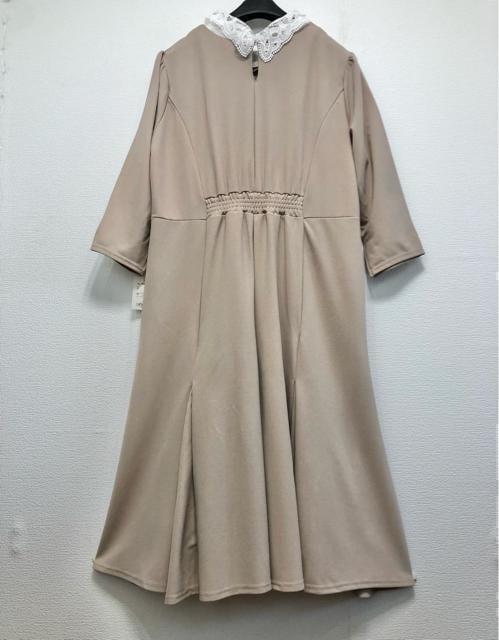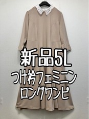 新品☆5Lベージュ系♪レース衿取り外せる♪フェミニン素敵なロングワンピ☆w132