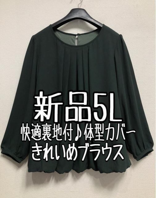 新品☆5Lグリーン系♪フロントタック上品きれいめブラウス♪吸汗速乾☆b361