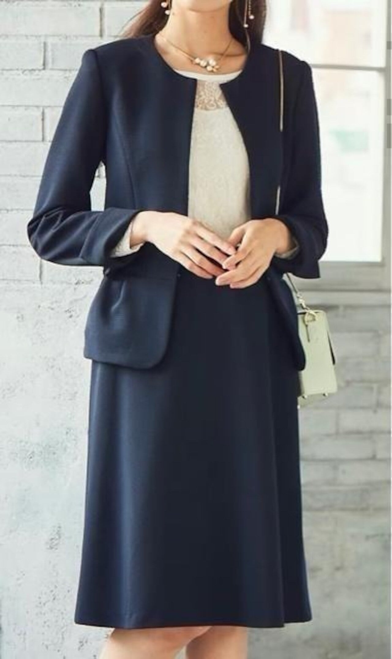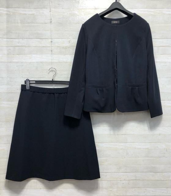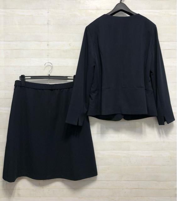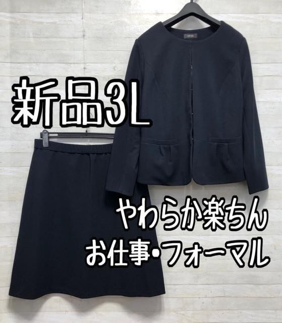 新品☆3L紺系♪やわらか楽ちんフォーマルスカートスーツ♪お仕事にも〇D427