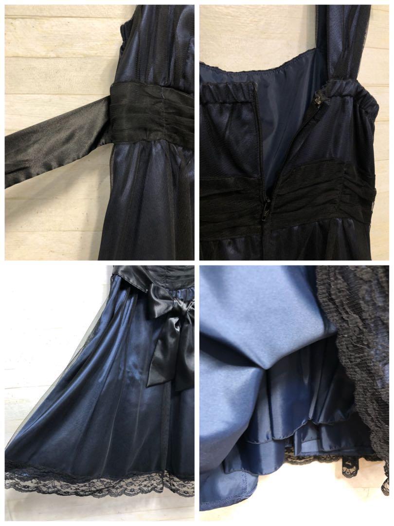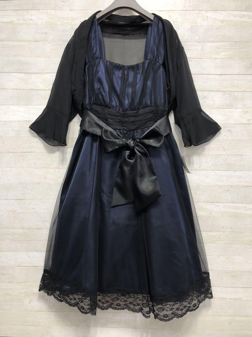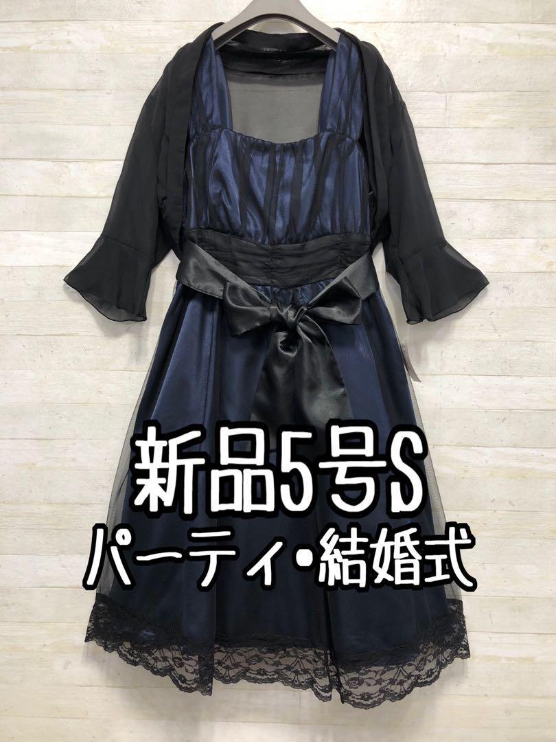 新品☆5号S♪黒×紺系♪ボレロ付パーティワンピースセット〇G275
