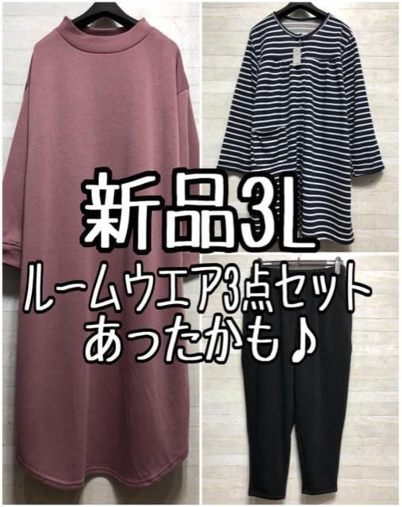 新品☆3L♪ルームウエア3点セット♪あったか裏地も〇G263