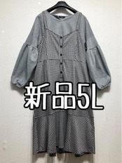 新品☆5L♪グレー系ゆったりプルオーバー&チェック柄キャミワンピ☆z224