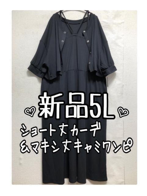 新品☆5L濃紺系♪セットアップ♪カーデ&マキシ丈キャミワンピ☆a637