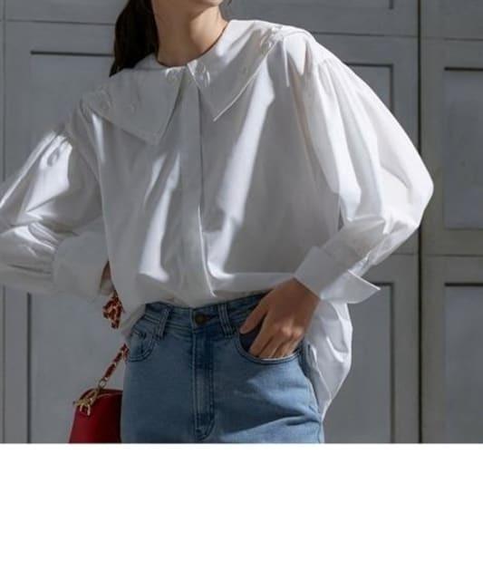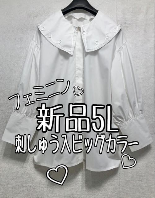 新品☆5L白系♪ビッグカラー♪ボリュームブラウス☆b889