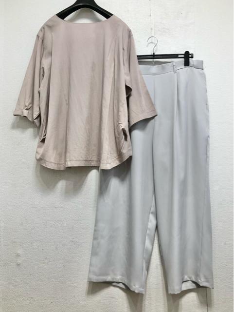 新品☆5L♪グレージュ系うすかるトップス&グレー系きれいめワイドパンツ☆b961